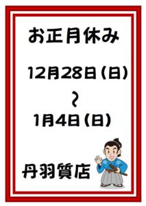2026年お正月休みのお知らせ 12月28日(日)~1月4日(日)
